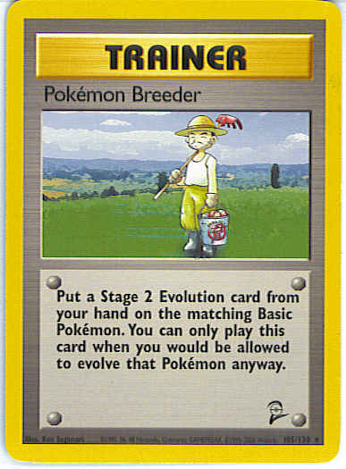 Put a Stage 2 Evolution card from your hand on the matching Basic Pokemon. You can only play this card when you would be allowed to evolve that Pokemon anyway.