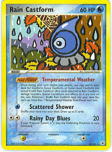 Evne on it are now on the new Pokemon.) Shuffle Rain Castform back into your deck. You can't use more than 1 Temperamental Weather Poke-Power each turn. (Poke-POWER)