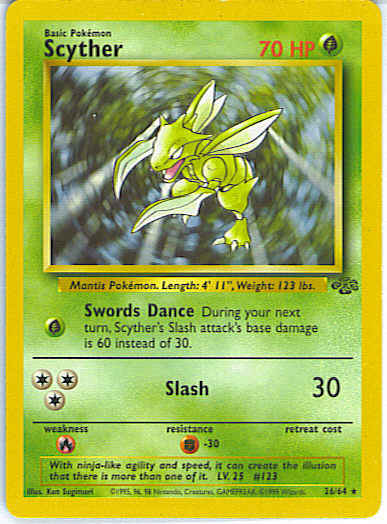 Evne [G] Swords Dance - During your next turn, Scyther's Slash attack's base damage is 60 instead of 30.