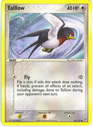 Evne2[C] Fly (10) Flip a coin. If tails, this attack does nothing. If heads, prevent all effects of an attack, including damage, done to Tallow during your opponent's next turn.