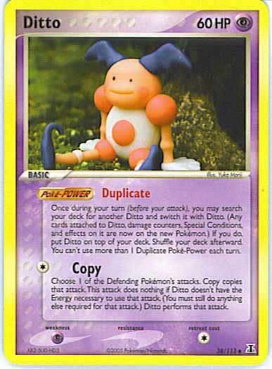 Evne on it are now on the new Pokemon.) If you do, put Ditto on top of your deck. Shuffle your deck afterward. You can't use more than 1 Duplicate Poke-Power each turn. (Poke-POWER)