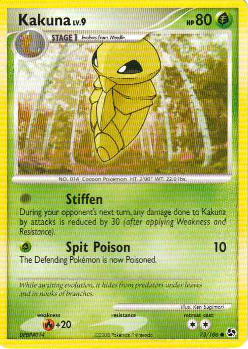 [0] Stiffen - During your opponent's next turn, any damage done to Kakuna by attacks is reduced by 30 (after applying Weakness and Resistance).