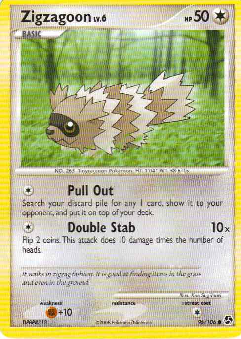 | Type | Colorless | | Pokemon serie | Great Encounters | | Stadie | Basic | | HP | 50.0 | | Sjældenhed | Common | | Tilbagetrækning | 1.0 | | Svaghed | F+10 | | Kortnummer | 96 | | Evne |