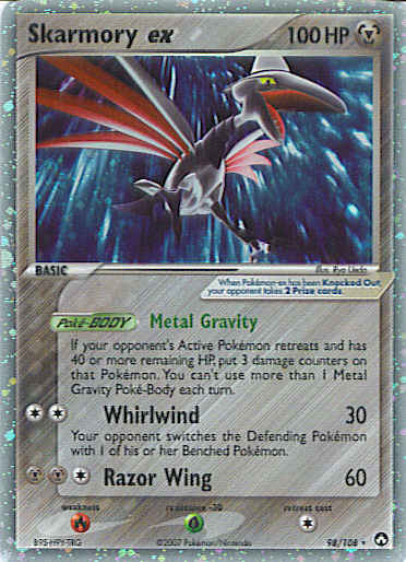 | Type | Metal | | Pokemon serie | Power Keepers | | Stadie | Basic | | HP | 100 | | Sjældenhed | Ultra-Rare | | Tilbagetrækning | 1 | | Modstand | G | | Svaghed | R | | Kortnummer | 98 | | Evne |