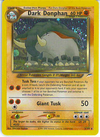 | Type | Fighting | | Pokemon serie | Neo Destiny | | Stadie | Stage 1 | | HP | 60 | | Sjældenhed | Rare | | Tilbagetrækning | 3 | | Modstand | L | | Svaghed | G | | Kortnummer | 3 | | Evne |