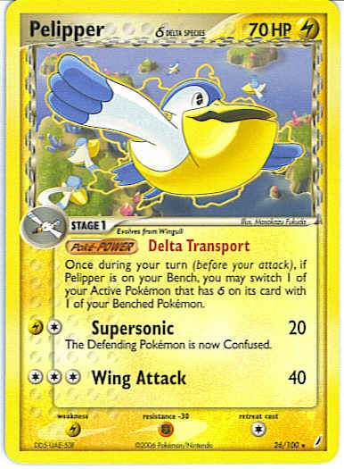 | Type | Lightning | | Pokemon serie | Crystal Guardians | | Stadie | Stage 1 | | HP | 70 | | Sjældenhed | Rare | | Tilbagetrækning | 1 | | Modstand | F | | Svaghed | L | | Kortnummer | 26 | | Evne |