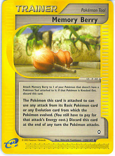 The Pokemon Memory Berry is attached to can use any attack from its Basic Pokemon card or any Evolution card attached to it. It still has to pay for that attack's Energy cost. At the end of the turn in which this happens, discard Memory Berry.