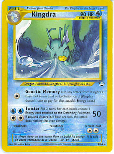 [C] Genetic Memory - Use any attack from Kingdra's Basic Pokemon card or Evolution card. (Kingdra doesn't have to pay for that attack's Energy cost.)