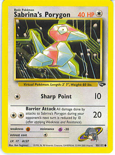 [CC] Barrier Attack (20) All damage done by attacks to Sabrina's Porygon during your opponent's next turn is reduced by 10 (after applying Weakness and Resistance).