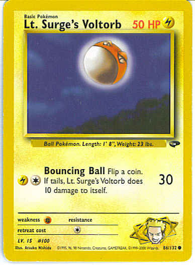 [CL] Bouncing Ball (30) Flip a coin. If tails, Lt. Surge's Voltorb does 10 damage to itself.