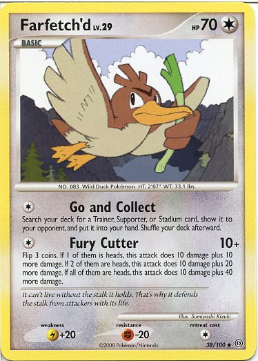 [C] Fury Cutter (10+) Flip 3 coins. If 1 of them is heads, this attack does 10 damage plus 10 more damage. If 2 of them are heads, this attack does 10 damage plus 20 more damage. If all of them are heads, this attack does 10 damage plus 40 more damage.