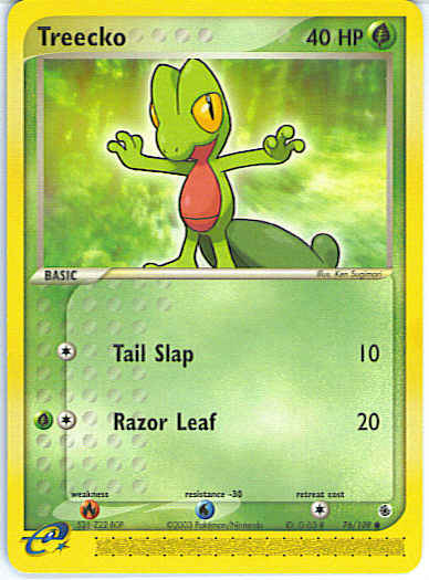 | Type | Grass | | Pokemon serie | Ruby Sapphire | | Stadie | Basic | | HP | 40 | | Sjældenhed | Common | | Tilbagetrækning | 1 | | Modstand | W | | Svaghed | R | | Kortnummer | 76 | | Evne | [C] Tail Slap (10) [CG] Razor Leaf (20)
