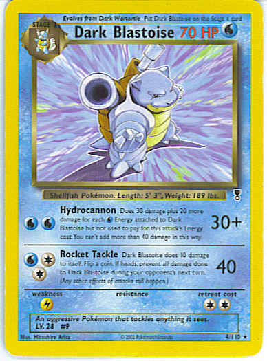 [WW] Hydrocannon (30+) Does 30 damage plus 20 more damage for each W Energy attached to Dark Blastoise but not used to pay for this attack. You can't add more than 40 damage in this way.