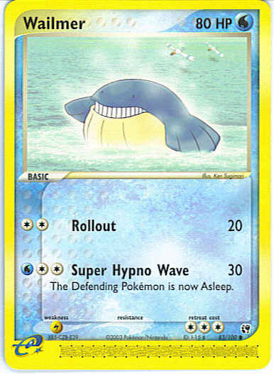 | Type | Water | | Pokemon serie | Sandstorm | | Stadie | Basic | | HP | 80 | | Sjældenhed | Common | | Tilbagetrækning | 3 | | Svaghed | L | | Kortnummer | 83 | | Evne | [CC] Rollout (20) [CCW] Super Hypno Wave (30) The Defending Pokemon is now Asleep.