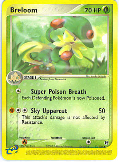 | Type | Grass | | Pokemon serie | Sandstorm | | Stadie | Stage 1 | | HP | 80 | | Sjældenhed | Uncommon | | Tilbagetrækning | 1 | | Svaghed | R | | Kortnummer | 33 | | Evne | [C] Super Poison Breath - Each defending Pokemon is now Poisoned. [CCF] Sky Uppercut (50) This attack's damage is not affected by Resistance.