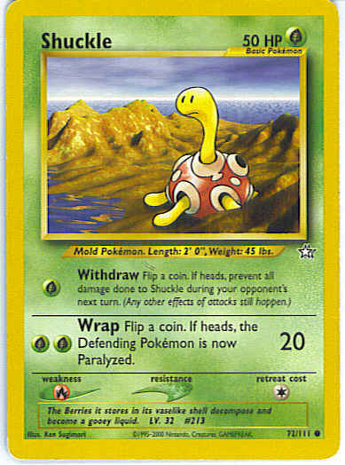 [G] Withdraw - Flip a coin. If heads, prevent all damage done to Shuckle during your opponent's next turn. (Any other effects of attacks still happen.)